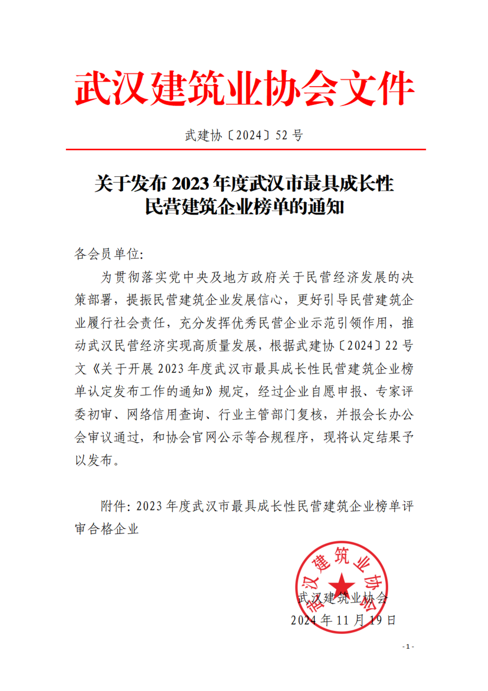 • 2024-11-22湖北省建工第五建設有限公司榮膺2023年度武漢市最具成長性民營建筑企業...[]